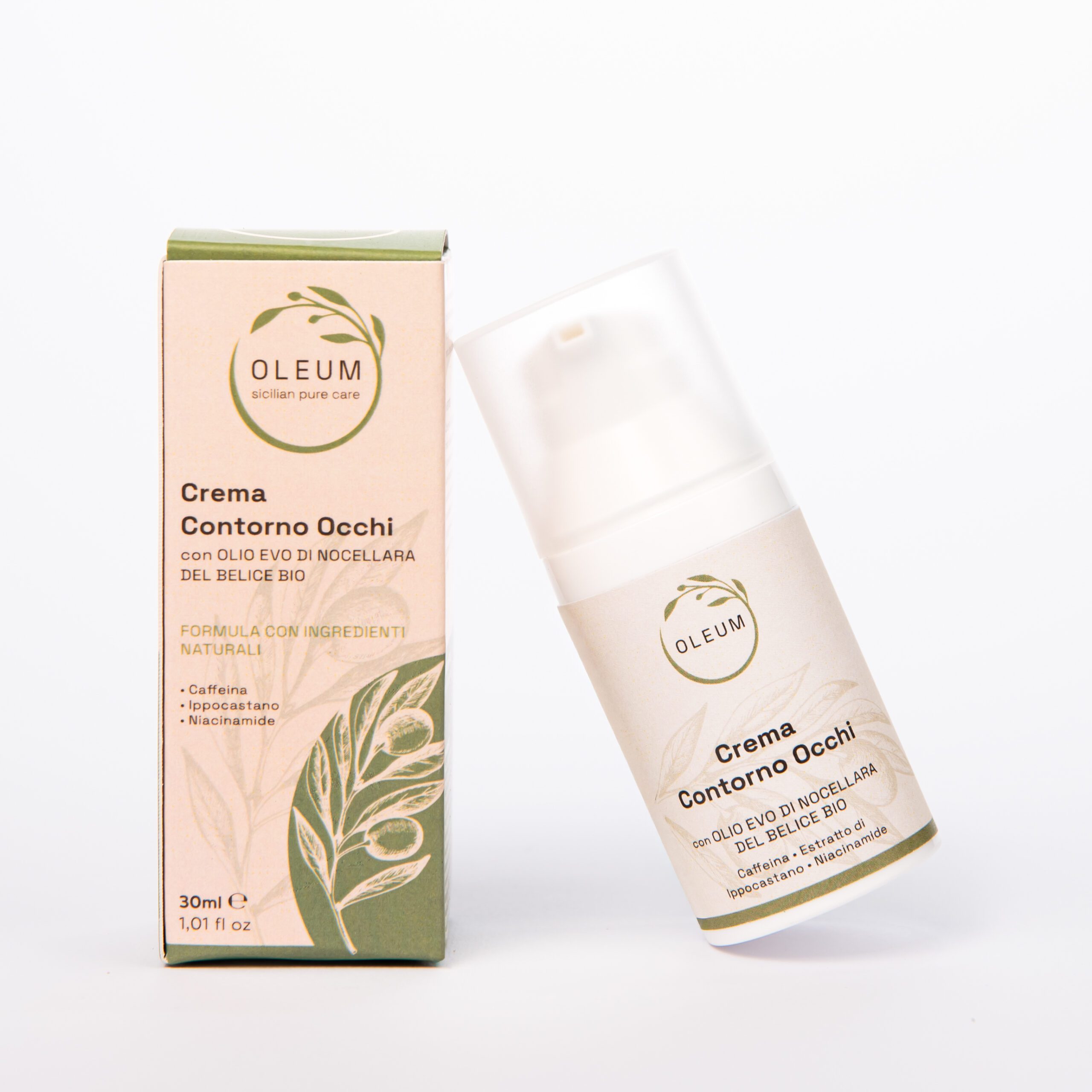 La formula combina l’olio extravergine di oliva Nocellara del Belice Bio con caffeina, ippocastano e niacinamide: un mix che stimola il microcircolo, decongestiona e riduce borse e occhiaie.