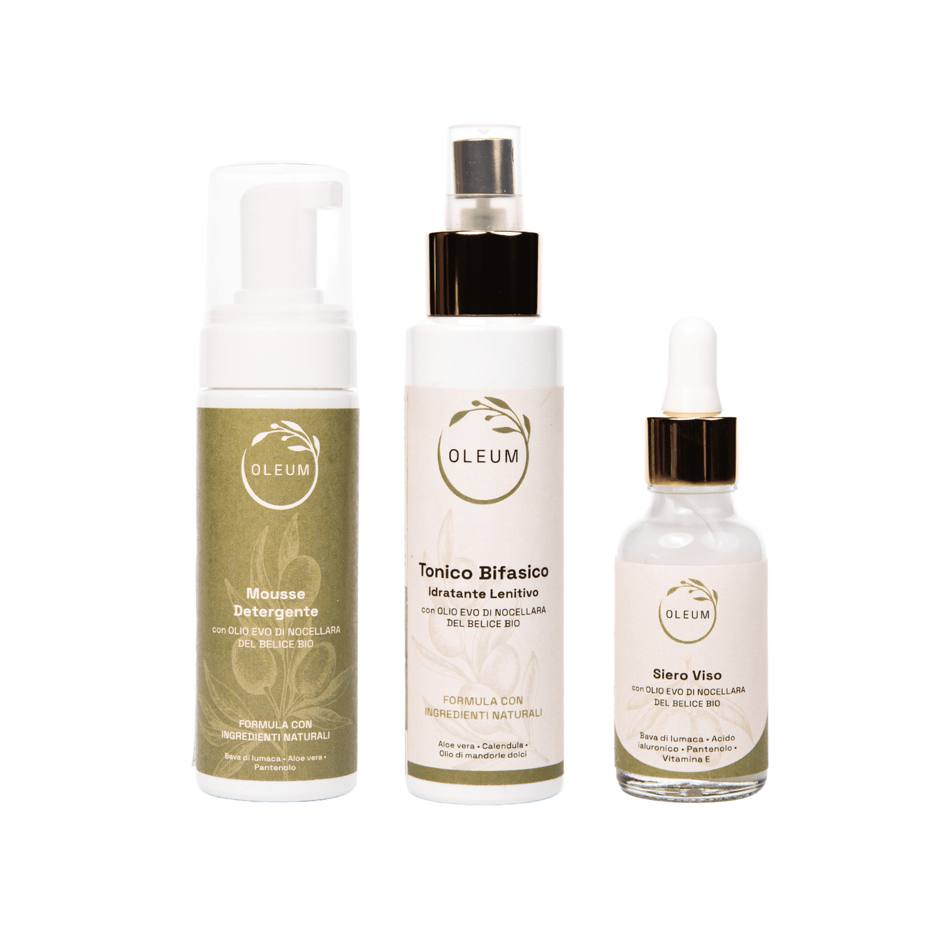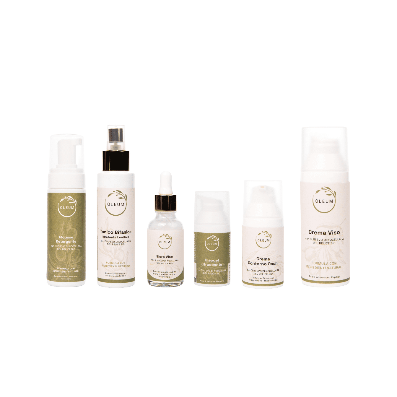 Il rituale skincare completo di Oleum: 6 prodotti con ingredienti naturali e olio EVO Nocellara del Belice Bio per detergere, idratare e rigenerare la pelle ogni giorno.